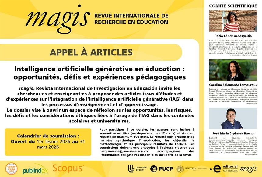 La revue Magis - International Journal of Research in Education lance un appel à articles pour un numéro spécial "Intelligence artificielle générative en éducation : opportunités, défis et expériences pédagogiques".